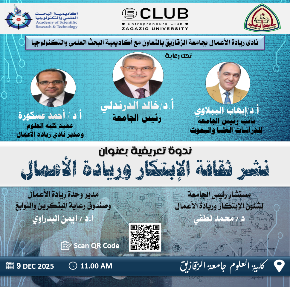 دعماً لريادة الأعمال ندوة تعريفية بعنوان نشر ثقافة الإبتكار وريادة الأعمال بكلية العلوم